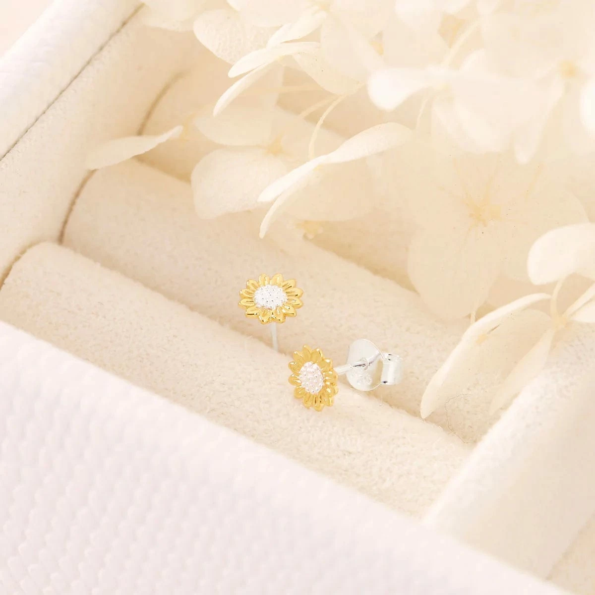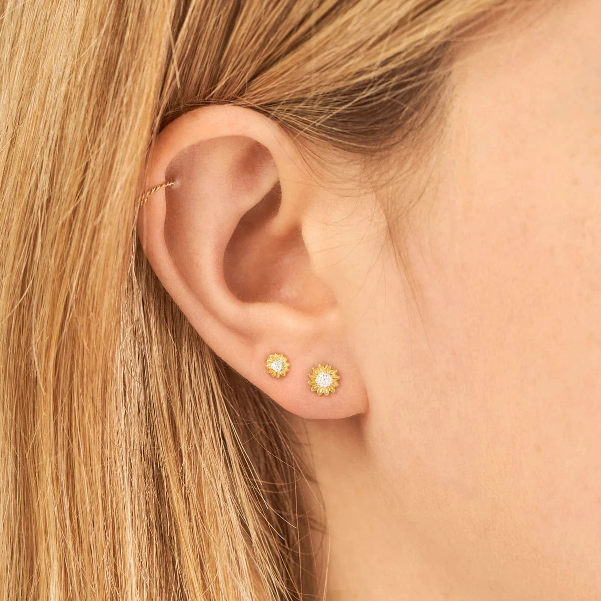 Sterling Silver and 18K Gold Vermeil Delicate Sunflower Studs