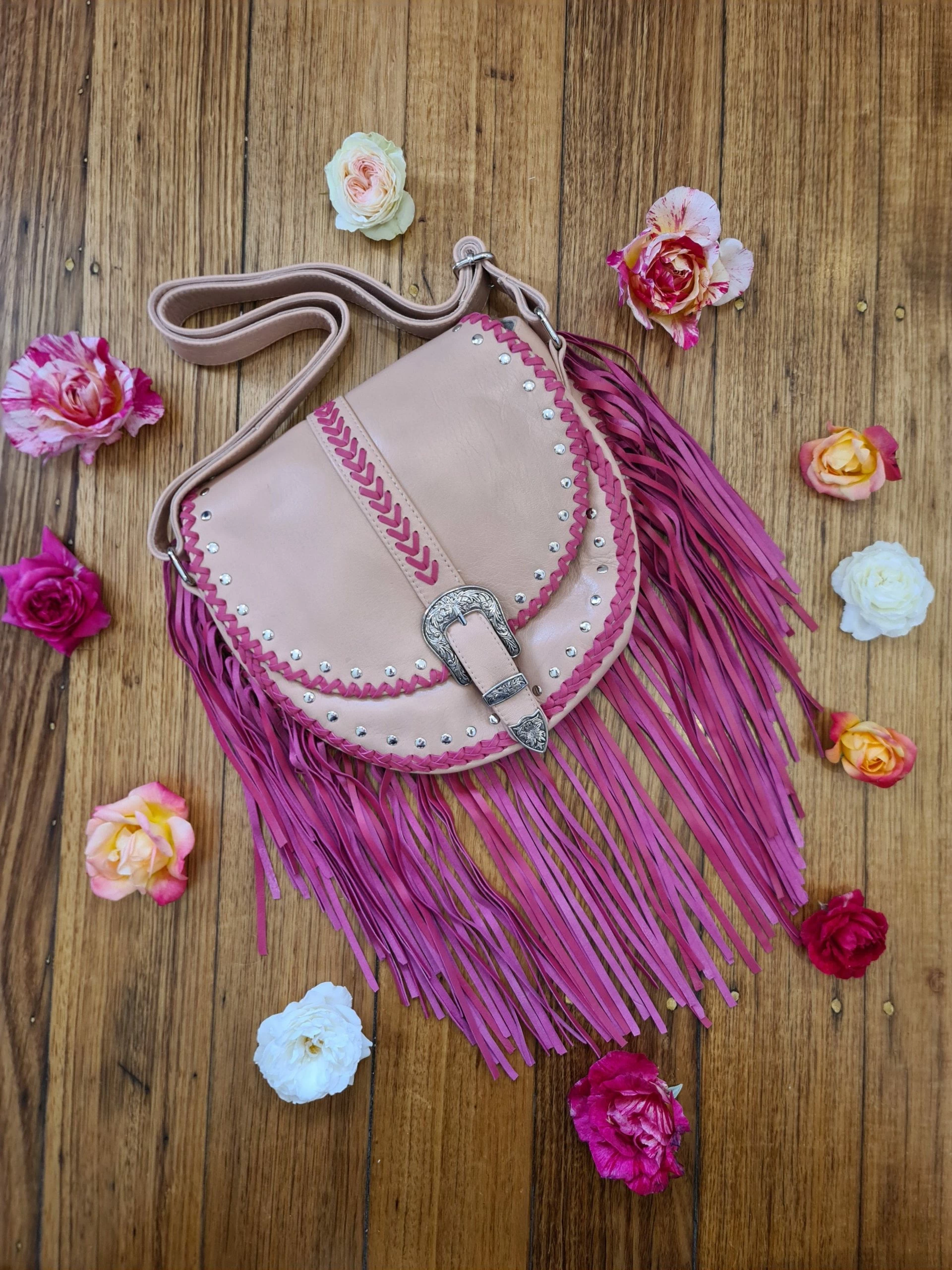 Our Esmeralda Bag – Nat/Fuchsia is the perfect accessory for everyday wear. Featuring supple cows leather with pink tassels, this boho-style cross body bag offers plenty of storage, an adjustable strap for a custom fit, and unique bohemian detailing for a touch of flair. Ideal for any lifestyle, this bag is the perfect combination of style and practicality.