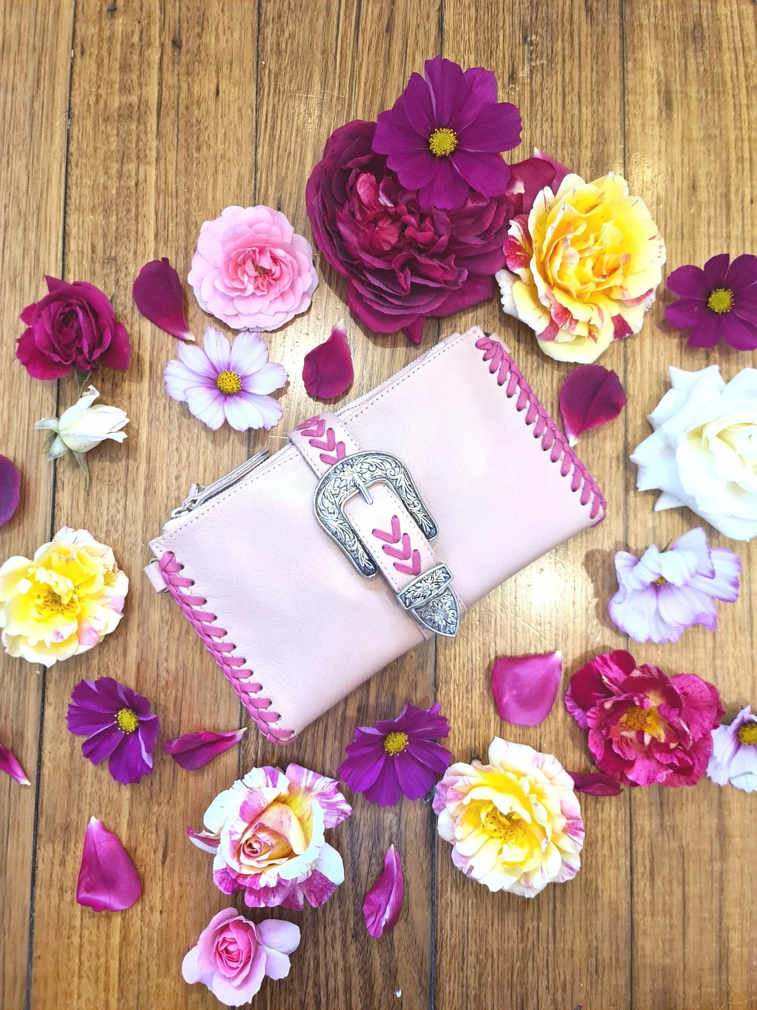 The perfect bohemian leather wallet, Designed to match with the Esmeralda Bag or styles beautifully with any of our Celestial Gypsy Leather Collection of boho bags.