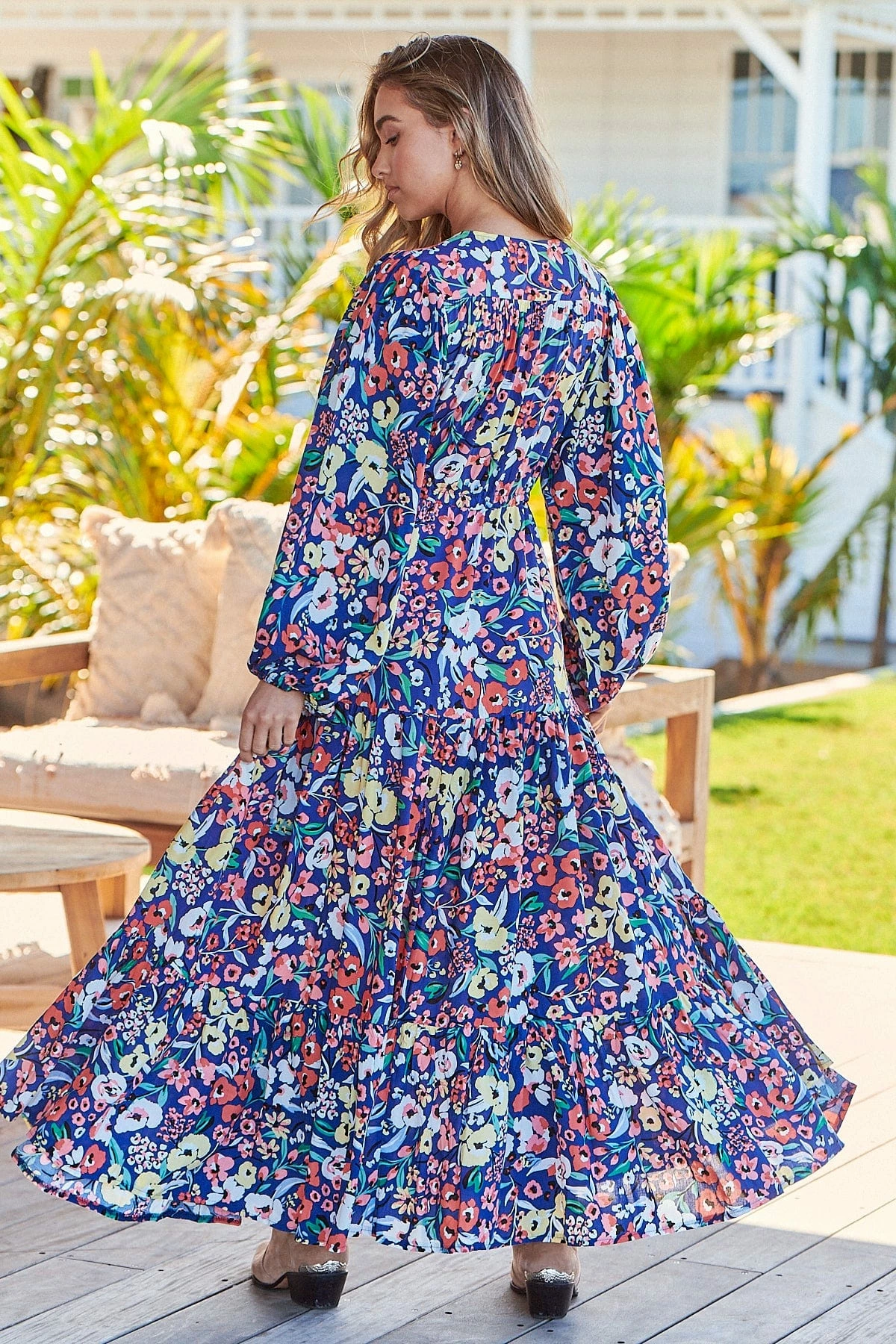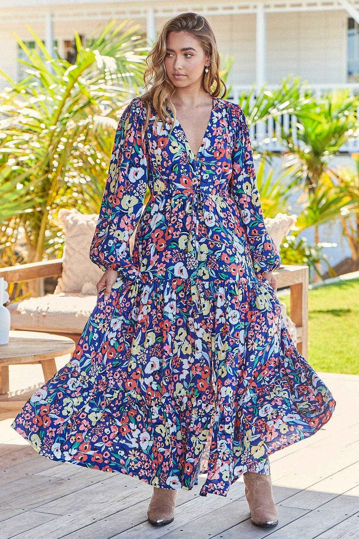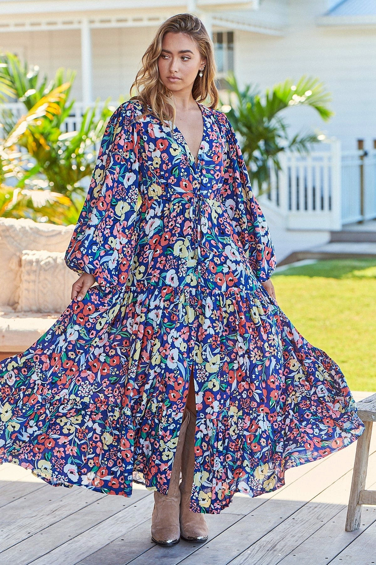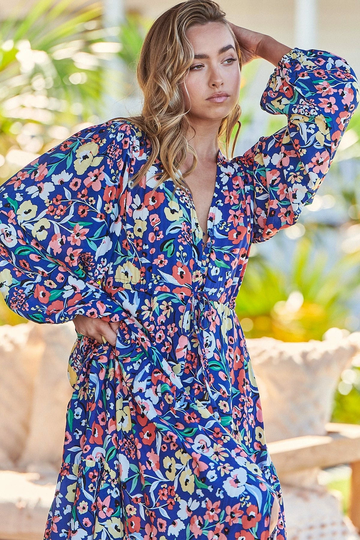 Feel like a boho goddess in our stunning new boho floral maxi dress! The ‘Teresa Maxi Dress!’ in ‘Carnation’ features a soft rayon material, maxi length, long sleeves with elasticated cuffs and an adjustable front tie. You will enjoy swishing around in this Jaase Maxi Dress.