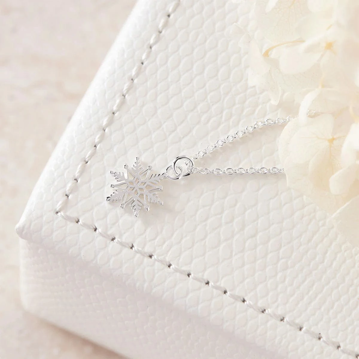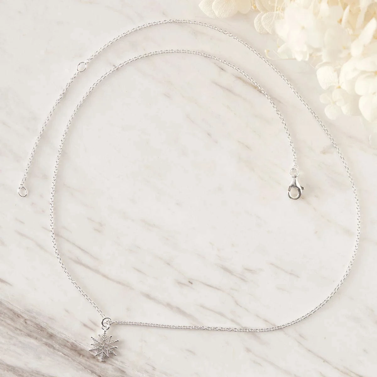 Embrace the enchanting beauty of winter with the Winter Solstice Snowflake Necklace by Midsummer Star Jewellery. This delicate sterling silver necklace captures the intricate allure of a snowflake, a symbol of uniqueness and wonder.