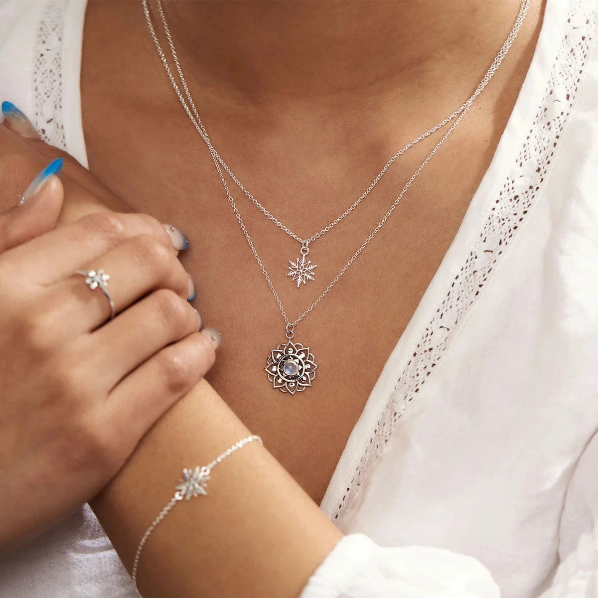 Elevate your jewellery collection with the Winter Solstice Snowflake Necklace by Midsummer Star. Embrace the boho spirit and adorn yourself with the timeless allure of this exquisite piece.
